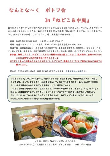 真冬にあったか~いものが食べたいとでがらしさんたちと話していました。 そこで、真冬のポトフ会を企画しました。(チラシ作成:刀根さん)