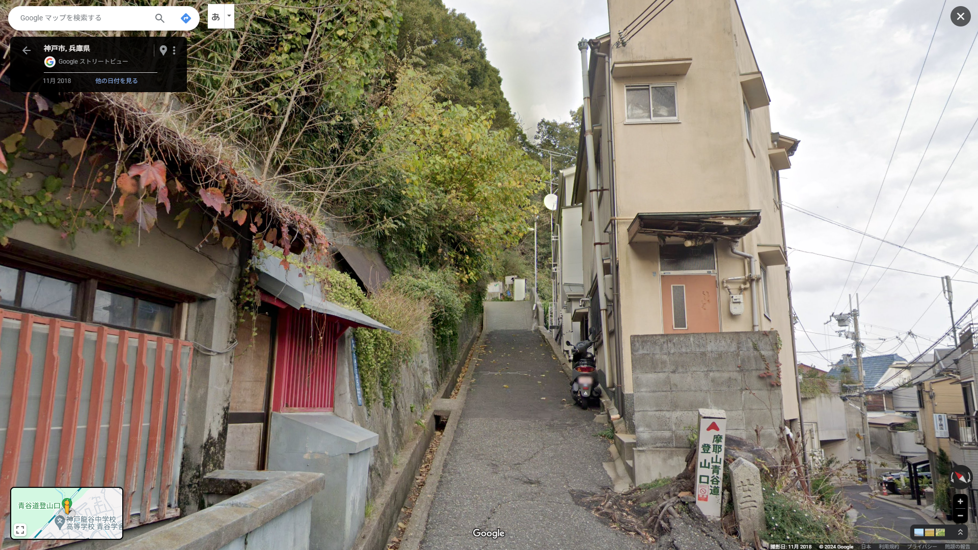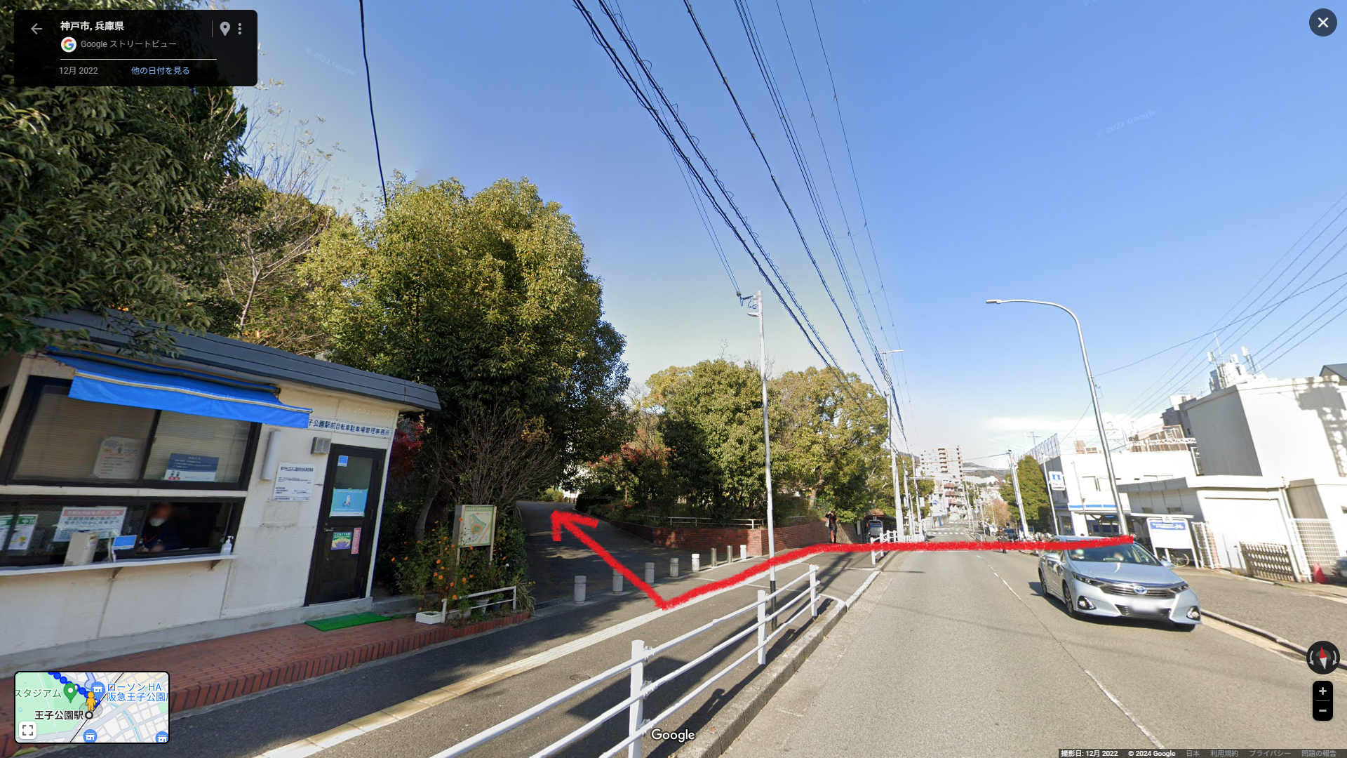 王子公園駅|駅から向かいの王子公園に入り、公園の端を抜けたら、住宅街の坂道を上ってきます。