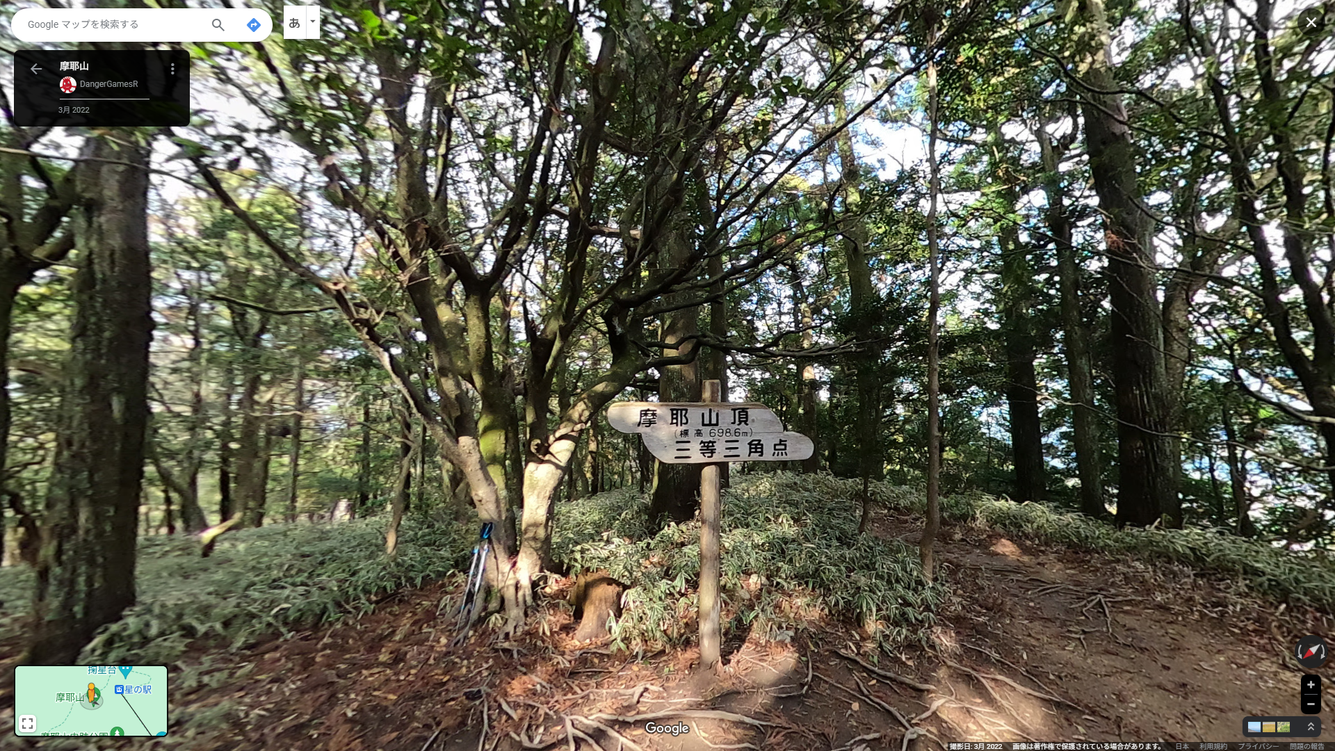 摩耶山山頂|摩耶山史跡公園の突き当たりを左へ。登りつめると天狗岩大神の磐座と、その裏に三角点があります。木に囲まれていて眺望はありません。