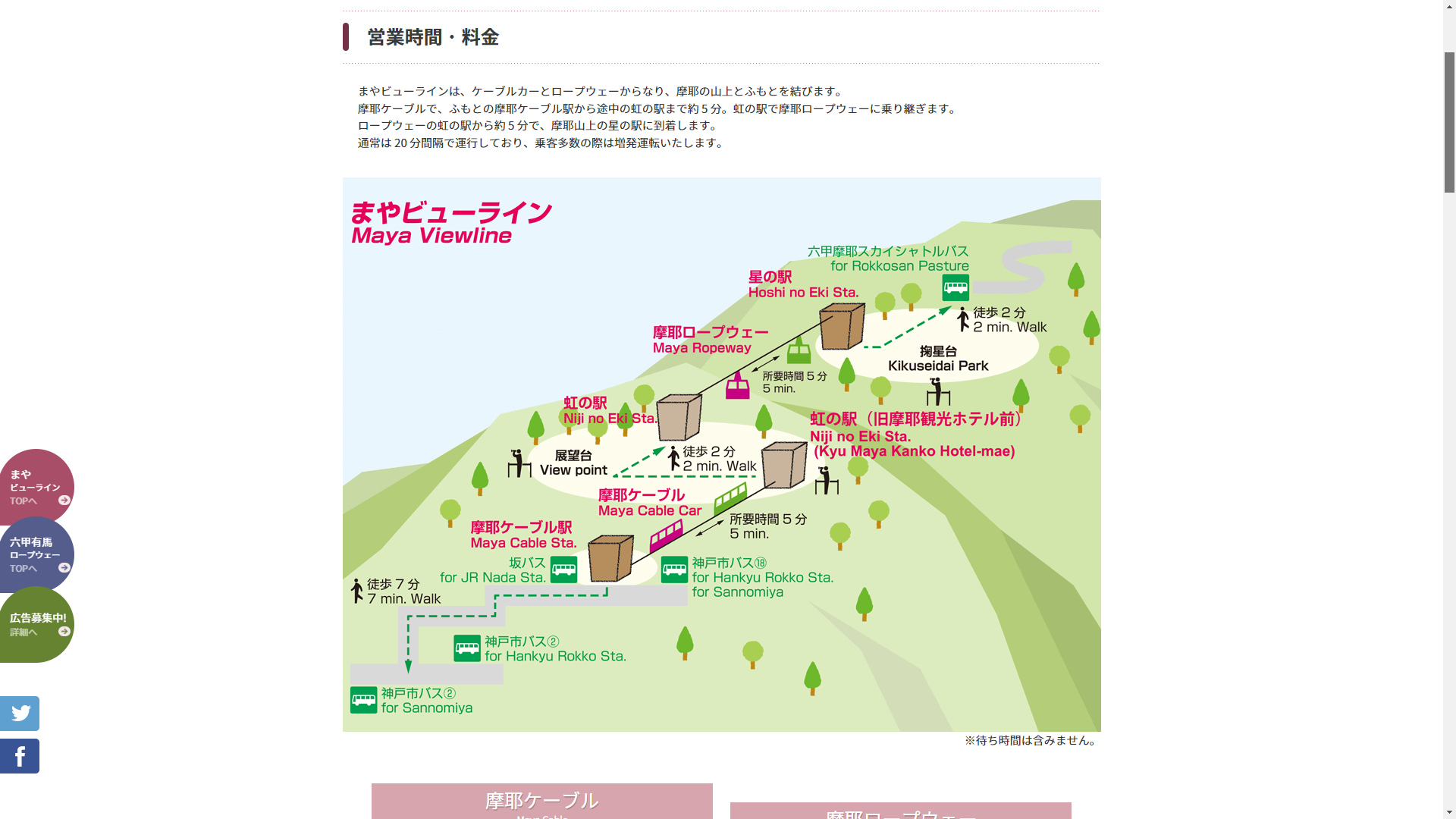 摩耶山山頂には、徒歩またはバス、ケーブルカー、ロープウェイと乗り継ぐことで簡単に上り下りできます。
