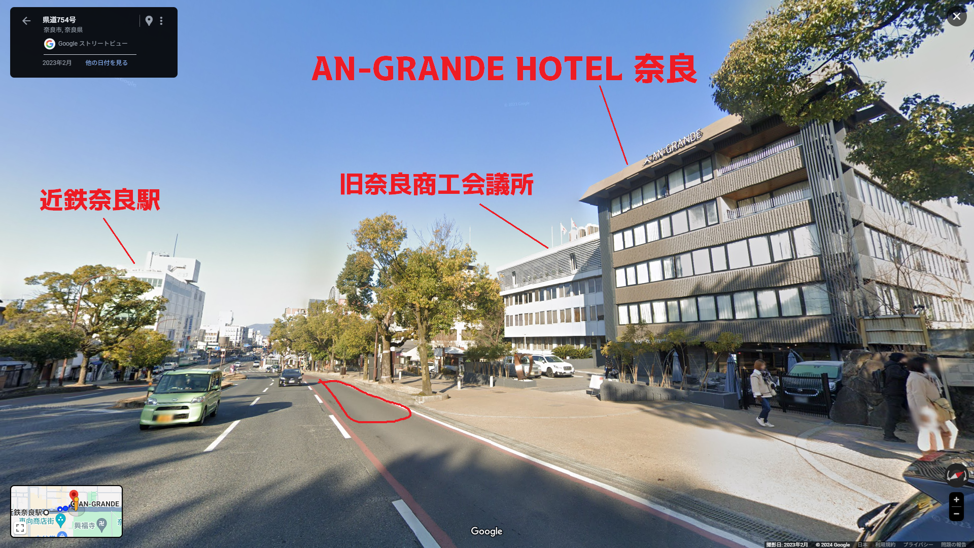 奈良商工会議所が移転したため、分かりやすいように隣のホテルを目印にしました。
