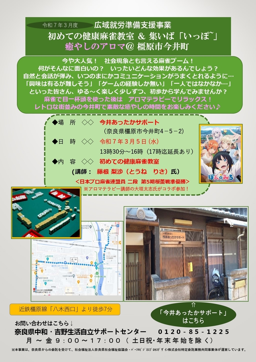 1~3月は健康麻雀とアロマがセットのお得な特別講座。