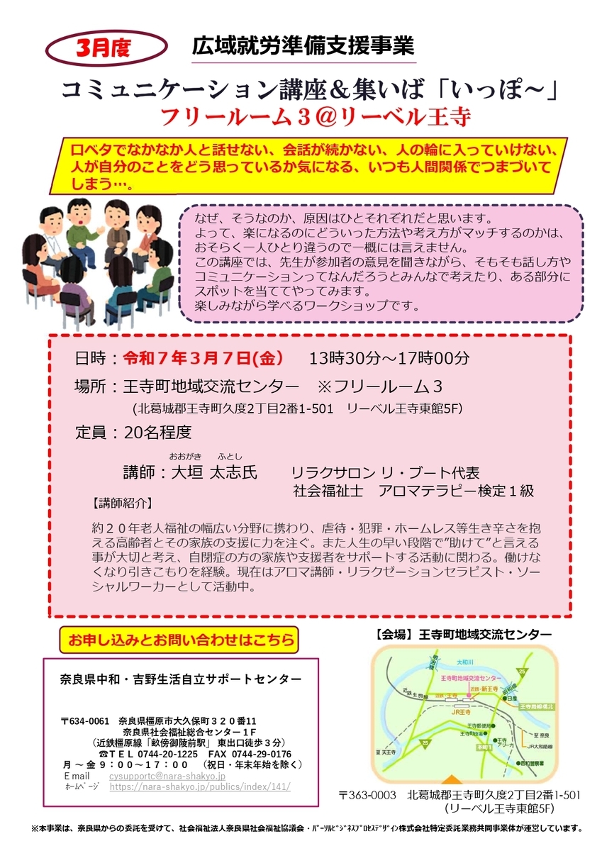 場所:王寺町地域交流センター フリールーム3(リーベル王寺東館 5F)