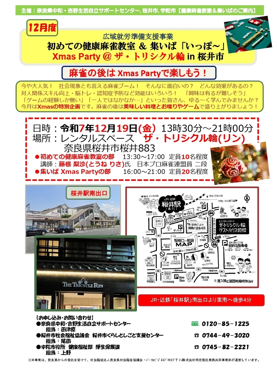 奈良県桜井市のJR・近鉄 桜井駅のちかく「ザ・トリシクル輪(りん)」さんで、いつもの健康麻雀、そしてその後つづけてクリパです。