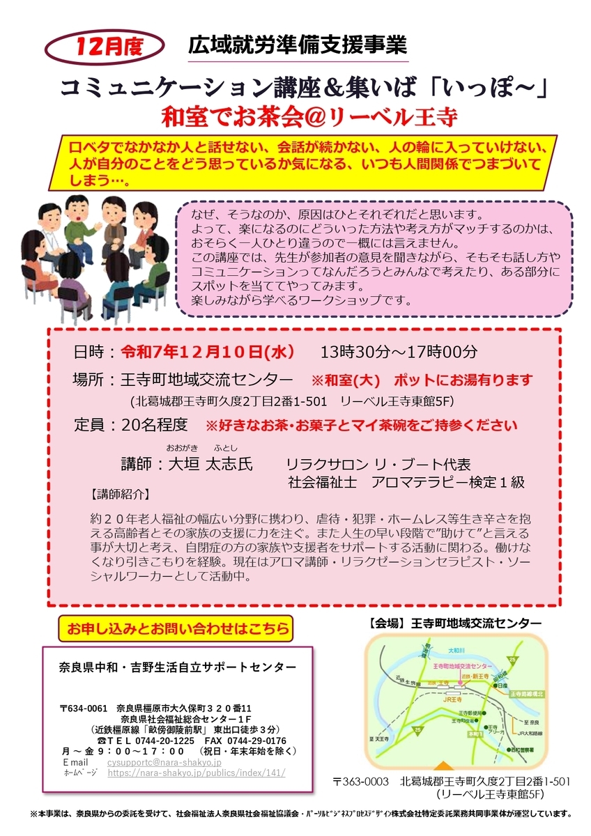 奈良県社会福祉協議会の、ひきこもり等の居場所「集いば いっぽ~」に、Breakが関わっています。